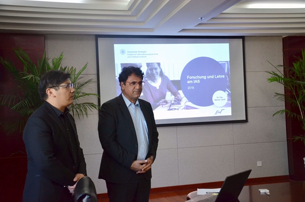 周大双就德国斯图加特大学自动化研究院研究方向和德国工业4.0应用性技术做介绍。他表示,研究院以增强研发能力、开展相关技术方面的人才培训、为中小型企业提供咨询和支持、吸引部分企业到合肥为主要目标,并希望将工业4.0生产系统孪生体和自主机器人物流运输系统等模块发展成熟并服务于地方企业。雅兹迪、茨姆曼、席勒和格斯林就工业4.0物联网系统下个性化制造和模块化制造、数字化产品研发和产线规划、物流4.0自主订单作业控制和智能群体等方面做详细介绍。