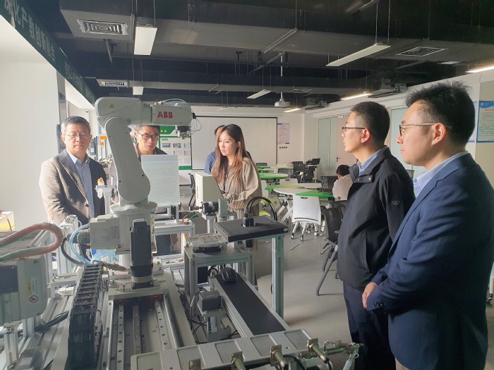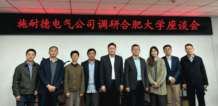 11月14日,施耐德电气(中国)有限公司标准化与教育合作处总监韩文秀、行业经理孙智、教育项目经理刘亘玮一行来校调研交流,党委委员、副校长王晓峰热情接待来宾。