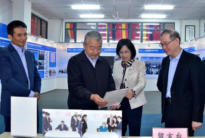 在参观中德共建合肥学院30周年成果展的过程中,王其东介绍了我校的基本情况,我校始终坚持“地方性、应用型、国际化”的办学定位,近些年大力开展教育改革,对标地方产业发展需求,加强校企合作,深入推进产教融合,实现产学研合作育人,培养应用型人才,服务地方经济社会发展。同时广泛开展国际合作,探索“双元制”人才培养模式,不断提高人才培养质量,构建起具有鲜明特色的应用型人才培养体系。