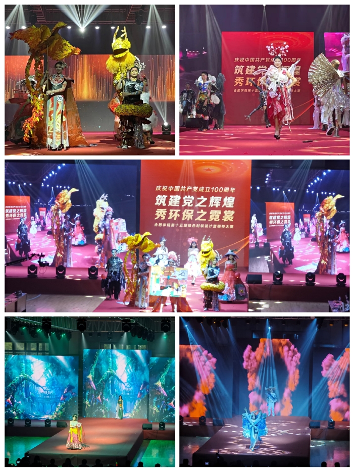 为引导青年大学生树立勤俭节约的意识、建设绿色美丽校园,积极营造庆祝中国共产党成立100周年活动氛围,引领广大青年将开展校园文化活动与党史学习教育相结合,我校举办了以“百年青春永向党,矢志建功新时代”为主题的第十五届绿色时装暨模特大赛。
