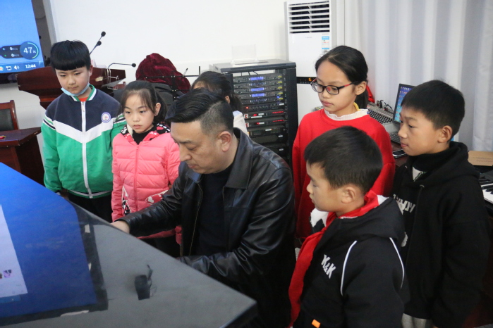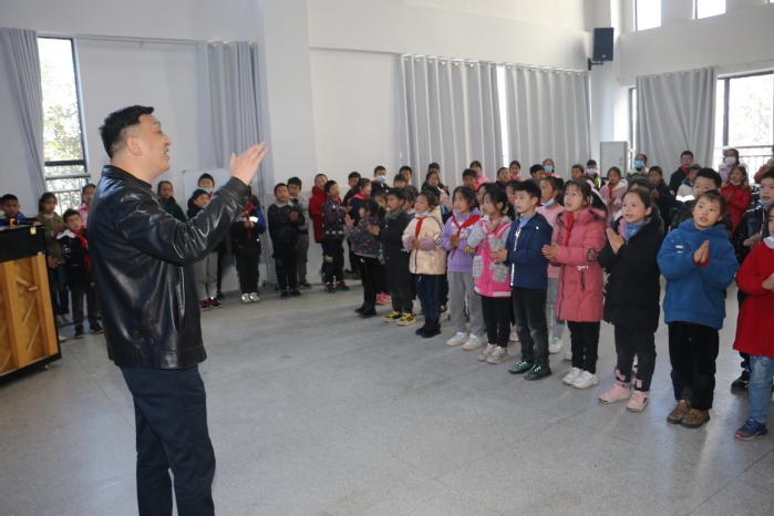教学之余,曹红星还从全校三到四年级六个班里遴选出四十名同学参加合唱团,每周三、周五下午,利用课外活动时间排练了《唱支山歌给党听》《听我说谢谢你》两首合唱曲目。经过曹红星的互动教学引导,合唱团的很多学生变得表现欲强烈、自信心大增,每次课程结束,学生们都不再怕生,主动围着曹红星交流。“随风潜入夜,润物细无声。”音乐教育就是用这种潜移默化的方式,以它强烈的艺术感染力发挥着独特的育人功能,曹红星老师用爱与专业为同心小学的孩子们种下一颗种子。