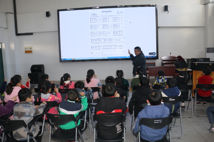 作为学校选派的支教帮扶教师,曹红星承担了同心小学五年级三个班的音乐课教学任务,他秉承“一切为了学生,为了学生的一切”的态度,认真制定了支教教学计划。针对学生音乐基础薄弱的实际情况,首先对学生进行五线谱和简谱对照学习,通过反复练习让学生达到一定熟练程度。同时在教学过程插入唱歌课教学,传授孩子们科学的发声方法,运用正确的发声方法演唱红歌。