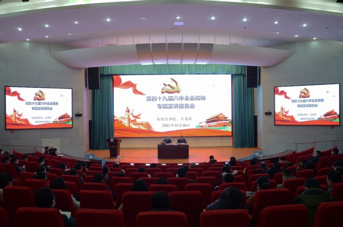 12月28日,我校于图书馆报告厅A厅举办党的十九届六中全会精神专题宣讲会,校党委书记王其东作专题报告,各二级学院党委所属的党支部书记、组织员、全校科级干部参加会议。