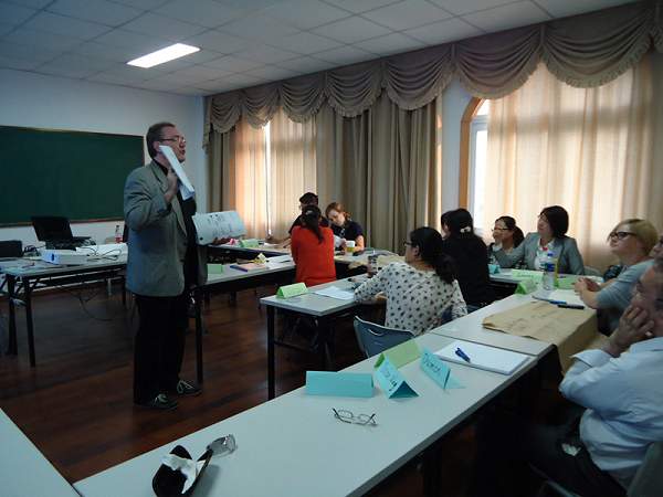 9日下午,格里查先生来到国际教育学院,为在中德合作物流管理专业(LOGinCHINA)和合肥德国应用科学学院(DHH)任课的中、德籍教师进行了教学法的培训。这也是继去年11月和今年6月以来,格里查先生第三次来到国际教育学院,对德语教师进行教学法培训。首先,格里查先生让教师们谈了谈教学中遇到的主要问题,然后由教师们分组进行讨论,提出各自认为理想的德福教学条件并进行展示。随后,格里查先生介绍了介绍德福考试内容构成及其特点,指出要根据考试内容的要求完善教学方案,并同大家探讨了具体的改善措施。