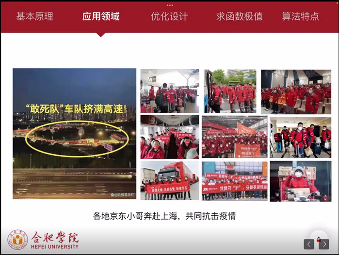 在先进制造工程学院的谢宇老师看来,如果授课的出发点是“为了课程思政而课程思政”,那么思政元素的展现就会很生硬,不仅达不到效果,还会影响正常教学效果。谢宇本学期教授的是《智能控制》,在《遗传算法》这一节课中,他将遗传算法与“各地京东小哥奔赴上海,共同抗击疫情”这一热点话题相结合,和同学们一起探讨京东如何运用大数据使上海附近的各个仓储点运输的物资达到均衡状态,同时,他将万众一心、同舟共济、守望相助的抗“疫”精神融汇在知识传授当中,达到了“润物细无声”的育人效果。