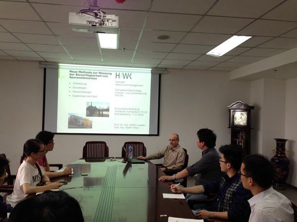 同日下午3时,德国吕文教授为我校学生做了一场题为“微量元素在生物制沼气中应用”的学术报告。这是吕文教授所带的博士生的毕业课题,教授向我们详细介绍了这个复杂的实验流程,并阐述了该研究的重要意义。本讲座对拓展同学视野,了解国际学术前沿动态有及其重要的意义。(生物与环境工程系研究生处)