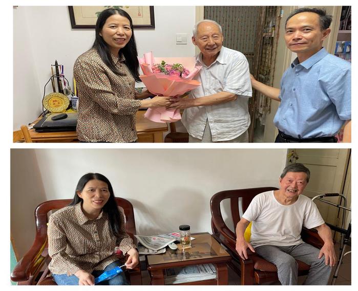 9月29日上午,组织部副部长、离退休工作处副处长宋执芸及离退休工作专员余勇代表学校上门慰问90岁以上的老同志代表,为他们送去了节日的祝福。