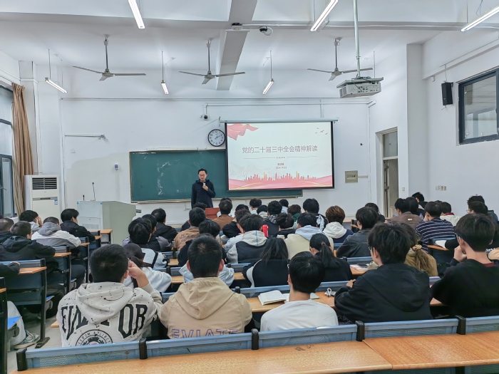 在授课中,吴功福表示,作为担当强国建设和民族复兴重任的时代新人,青年大学生既要有沉心学习、扎实研究的定力,也要有时不我待、勇攀高峰的紧迫感与追求,切实把思想和行动统一到全会精神和党中央决策部署上来,要深入学习贯彻党的二十届三中全会精神,自觉以党的创新理论凝心聚魂,时刻牢记使命与责任,刻苦学习、胸怀大志,为推进中国式现代化发展贡献力量。