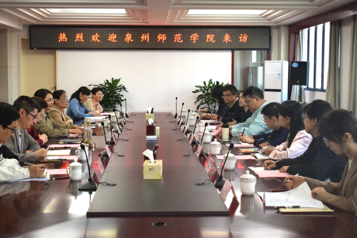 10月31日,泉州师范学院党委委员、副校长夏侯建兵来校调研交流,我校在行政楼会议室召开座谈会,副校长陈秀出席并主持会议,相关职能部门负责人参加会议。