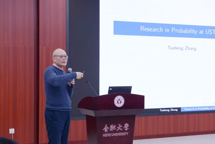 12月27日,由科研处和人工智能与大数据学院联合主办的“随机微分方程与随机分析”学术报告会在大学生活动中心一楼会议室举办。天津大学王凤雨教授、邵井海教授,山东大学陈增敬教授,以及中国科学技术大学张土生教授来校作专题讲座,我校数学学科团队的师生们到场聆听。报告会由党委副书记、校长任永主持。