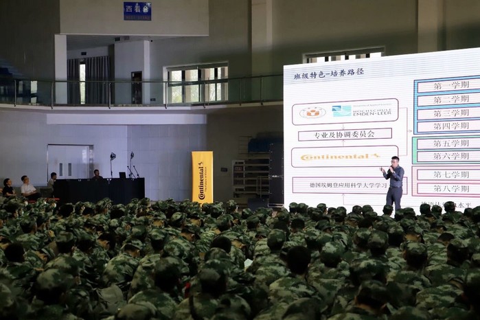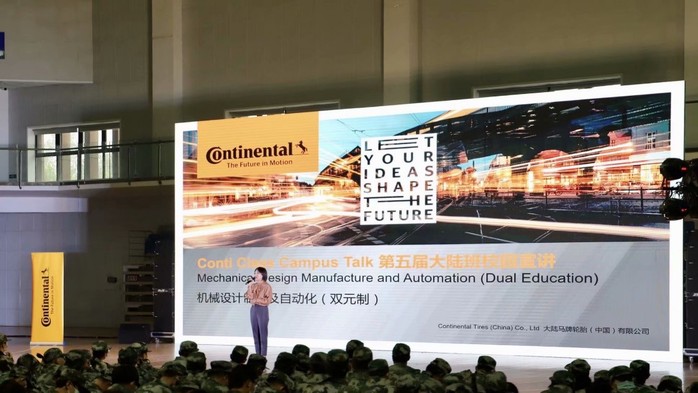 2020级大陆班招新宣讲会于9月22日在合肥学院体育馆正式举行。大陆马牌轮胎(中国)有限公司人力资源总监孙怡、大陆集团合肥工厂招聘经理刘乔松、大陆集团产品工业化部总监Kumar,我校国际交流合作处副处长张慧、先进制造工程学院院长吕刚、双元制大陆班专业负责人张光洲等人参加了本次活动。