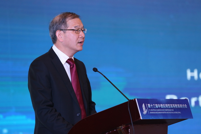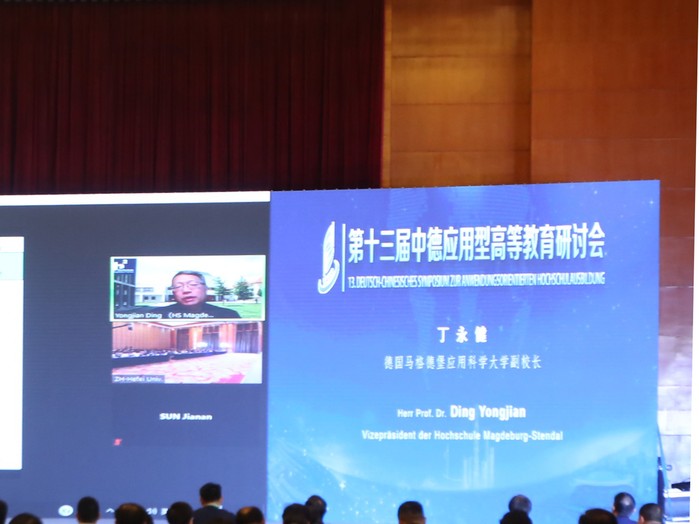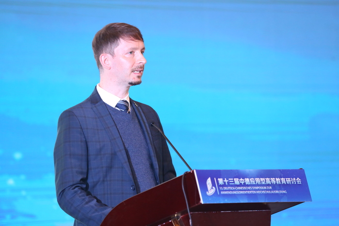开幕式后,在大会主旨报告环节,五位专家结合自身研究领域分享了对应用型高等教育的思考。德国马格德保应用科学大学副校长丁永健围绕“新形势下中德高校合作前景以及德国应用科学大学的角色”展开介绍。他表示,国际关系在很大程度上取决于经济合作,中德双方在经济领域具有多方面、多领域的合作,这也为中德高校教育合作提供了坚实的基础。在未来,中德高校间的合作交流会持续进行、不断深化,共同推动中德教育的发展进步、合作共赢。