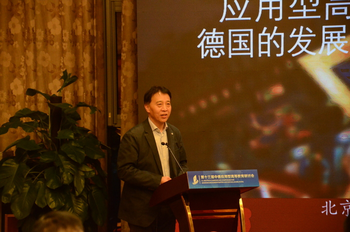 托马斯·霍夫曼以《奥斯纳布吕克应用科学大学中德合作硕士专业建设中与企业的融合》为题作报告。他表示,学校应采用专业理论知识与实践相结合的教学方式。在中德合作硕士专业建设项目中,不仅要开设相关研讨课,同时也与企业合作开展研发项目。企业对实践技能的高要求间接推动学校对学生的实践技术培养,以增强其创新能力和就业竞争力。
