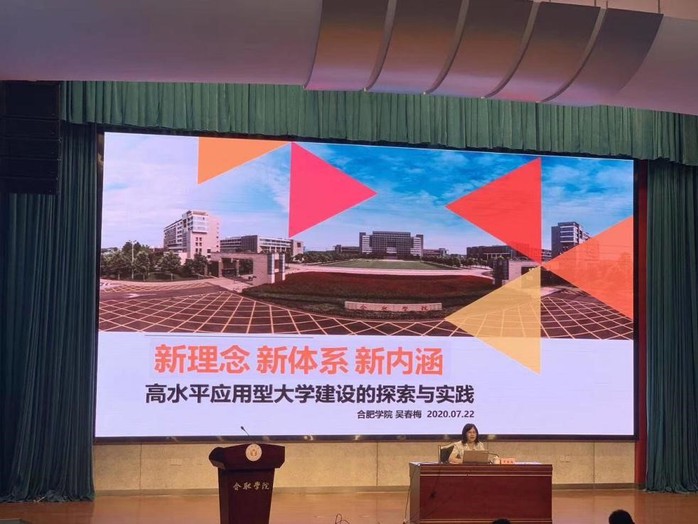 吴春梅作了题为《新理念,新体系,新内涵—高水平应用型大学建设的探索与实践》的报告,分别从学校的历史和改革历程、我校如何贯彻高水平应用型大学建设的理论及取得的成就、推进应用型大学建设的几点体会这四个部分,介绍了我校几十年来推进高水平应用型大学建设的实践和探索。她强调,新时代高水平的应用型大学建设首先要抓住人才培养的根本,建立专业围绕产业走、专业动态调整与改革机制,突出产教融合的抓手,围绕产业链部署教育链,用专业集群服务教育链推进一流应用型人才培养工作。