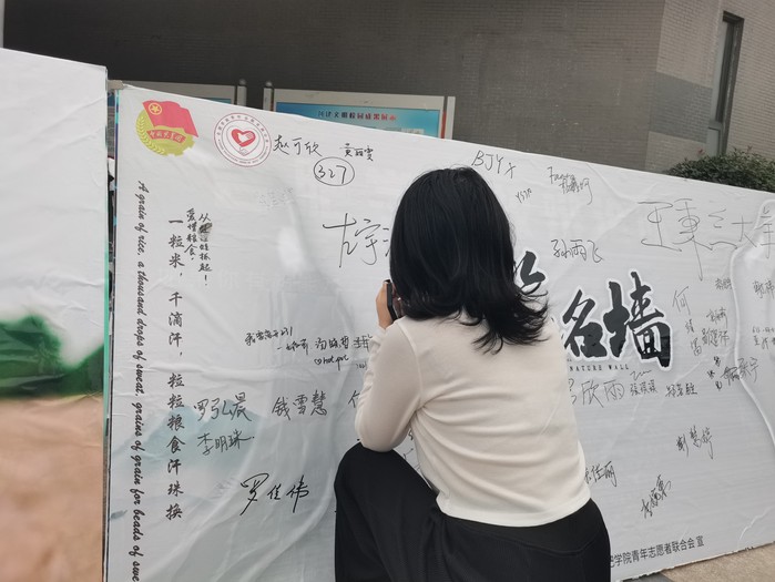 校青年志愿者联合会通过网络新媒体平台推送了“粮食周”宣传推文,通过向同学们宣传节约珍惜粮食的古诗句和“水稻之父”袁隆平的故事等,普及爱粮节粮知识;校院两级青年志愿者服务队在校内开展了随机采访、“爱粮之星”知识比赛、“光盘行动随手拍”等系列活动,在校内掀起了一股爱惜粮食和“光盘行动”的热潮。