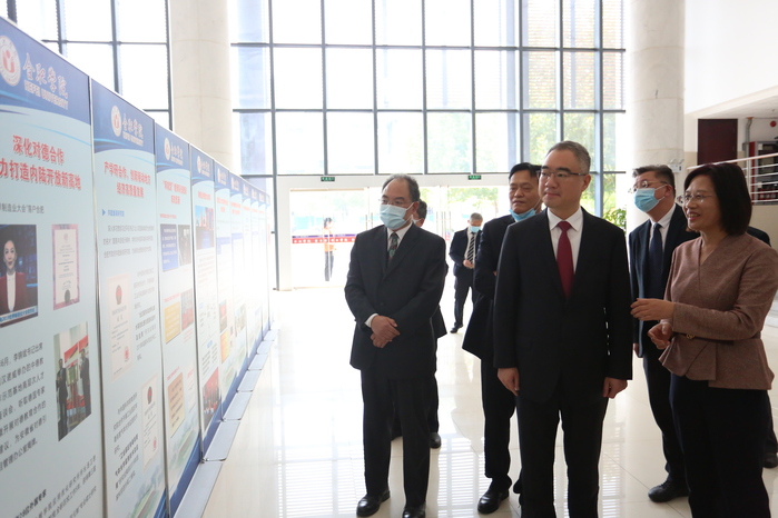 安徽省政府副秘书长、省政府政研室主任叶晓明,中共安徽省委教育工委副书记、省教育厅厅长赵振华,合肥市委常委、副市长路军,省外事办公室副主任王年宝,省政府办公厅副主任金宗顺,中共安徽省委教育工委委员、省教育厅副厅长张庚家,安徽大学党委书记蔡敬民等陪同参观。(党委宣传部