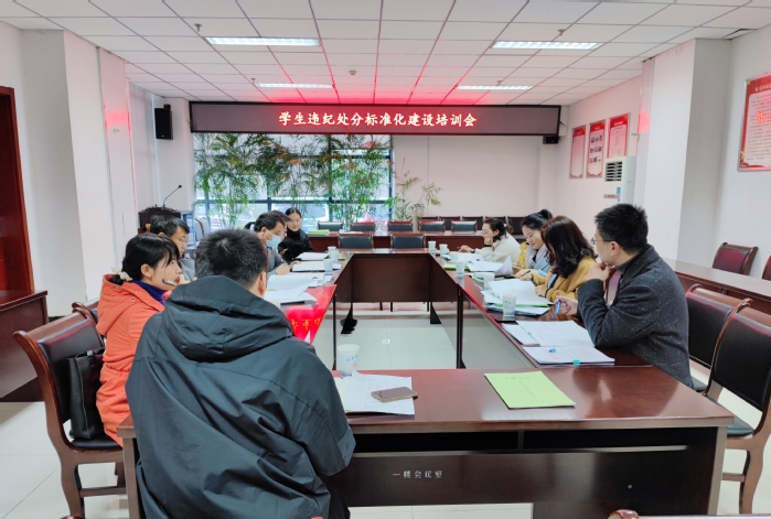 为持续贯彻党史学习教育要求,着力保障学生切身权益,有序推进学生管理服务标准化建设,切实强化秋冬季学生安全工作抓手,11月22日,我校在行政楼第一会议室举办学生违纪处分标准化建设培训会,各二级学院学工代表和新进辅导员参加会议。