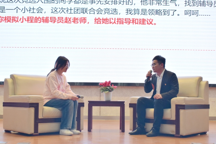 根据全国及安徽省辅导员素质能力大赛的新要求,案例研讨环节采用“我提问,你回答”的方式进行,考察选手综合运用理论、政策知识分析问题、研判问题、解决问题的能力。选手们围绕典型案例,提问切中要害、对答深挖本质,充分展现了我校辅导员队伍的专业素养和精神风貌。谈心谈话环节采用情景演绎的形式进行,考察选手对学生特点、成长成才规律的把握和对学生的教育引导能力、解决理论困惑和实际问题的能力。该环节中,选手与助演学生面对面开展谈心谈话。选手们耐心细致为学生答疑解惑、指明方向,展现了扎实的理论功底和出色的职业能力。