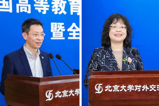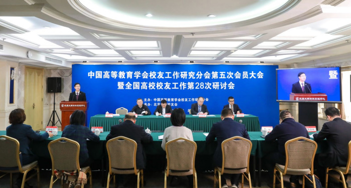 中国高等教育学会副会长兼秘书长姜恩来、办公室主任王雪涛,北京大学校友会常务副会长王杰、执行副会长邓娅等人现场出席会议。中国高等教育学会校友工作研究分会(以下简称“研究分会”)第四届理事会成员以及来自研究分会401家会员单位的共533名参会代表通过线上方式观看了会议直播。