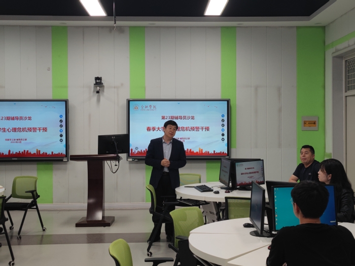 为有效应对春季学期学生心理健康教育工作特点,提升辅导员应对大学生心理危机的工作能力,3月16日下午,我校以“春季大学生心理危机预警干预工作”为主题,举办第23期辅导员沙龙。校党委委员、学工部部长朱涛,学工部副部长许刚应邀出席,近3年新入职的辅导员以及相关工作人员参加沙龙。