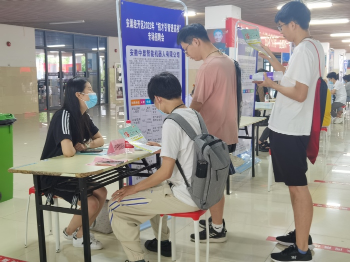 本次招聘会严格落实各项疫情防控措施,主要面向我校2022届在校未就业毕业生。本次活动共计50家企业参会,提供招聘岗位217个,招聘人数需求达1224人。参会企业包括安徽丰乐、安徽晶科、北大未名、合肥星源等,招聘专业需求主要涉及人工智能、生物化工、建筑工程、机械自动化、设计、语言文学、新闻传播、外语、旅游、教育和经济管理等。我校近百位在校未就业毕业生参加了此次招聘活动,参会企业共收取简历81份,招聘会现场初步达成意向为11人。