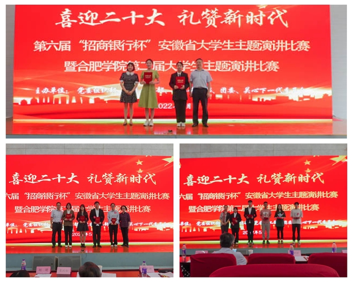 5月26日,合肥学院“喜迎二十大 礼赞新时代”第二届大学生主题演讲比赛在图书馆报告厅举行。比赛由党委组织部、党委宣传部、党委学工部、团委、关心下一代工作委员会联合举办。安徽省演讲学会会长崔跃松、招商银行云谷路支行行长胡婧、教育学院教授鲁世秀、团委副书记李妍妍、党委学工部思政教育中心主任黄锐担任评委。