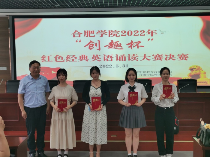 5月31日下午,合肥学院2022年“创趣杯”——红色经典英语诵读大赛决赛在我校一期六栋一楼学术报告厅举行。合肥创趣电子科技有限公司董事长方成俊,校财务处处长、安徽中德教育合作基金会秘书长何世昆,外国语学院党委副书记吴孔宝、副院长李洁等出席大赛。