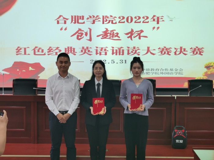 据悉,“创趣杯”——红色经典英语诵读大赛由我校外文系2007届校友方成俊和合肥创趣电子科技有限公司捐资设立,由安徽中德教育合作基金和外国语学院共同举办。自2021年第一届比赛举办以来,以其颇具影响力、感染力的形式在我校引起了热烈反响,本次活动不仅激发了学生对学习英语的热情,也进一步增强了同学们爱党、爱国的热情。