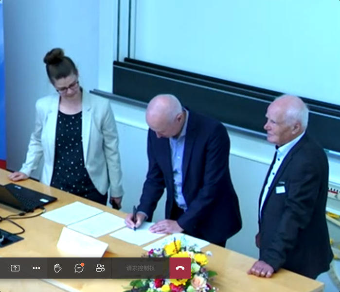 6月10日,合肥学院与德国高校国际合作联合会(以下简称“DHIK”)举行线上云签署会议。会议由DHIK中国事务部主任、吕贝克应用科学大学副校长汉斯•威廉•奥尔特(Hans Wilhelm Orth)主持,合肥学院院长吴春梅与DHIK主席迪特尔•莱昂哈德(Dieter Leonhard)分别代表双方签署了《合肥学院和德国高校国际合作联合会合作协议》。
