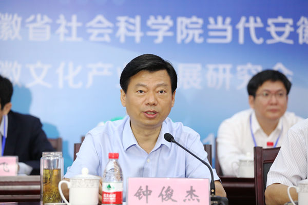 钟俊杰在致辞中指出,“安徽文化论坛”由安徽省社会科学院等单位联合举办的研讨安徽文化改革发展重大问题的年度高端学术论坛。论坛创办于2013年,已成功举办了两届,正逐步成为全省文化学术活动品牌和社科成果交流平台。他从合肥的区位经济优势、科教文化资源等方面介绍了合肥文化建设的基本情况与思考。他指出,要用文化创新滋养城市发展,继承和弘扬合肥优秀传统文化,进一步推动文化创新,为经济社会发展凝神聚力,并希望与会专家学者多关注多研究合肥,为合肥发展多提宝贵意见,推动合肥经济、文化发展迈向新台阶。