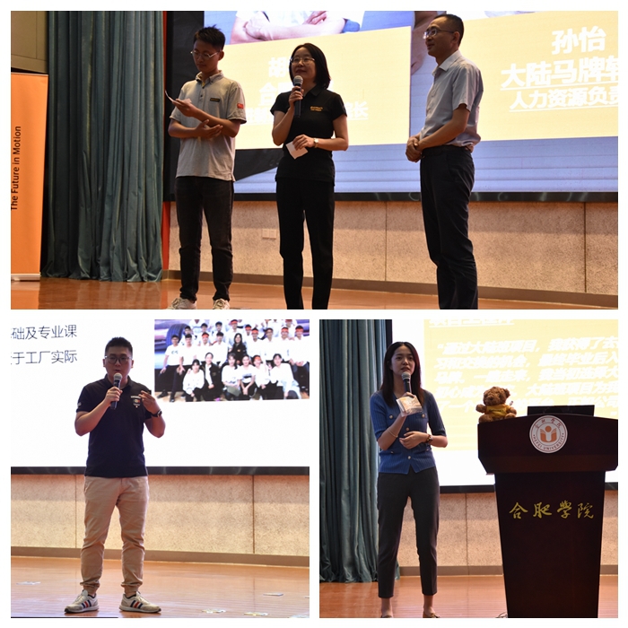 首先,大陆马牌轮胎(中国)有限公司招聘与雇主品牌经理李媛媛介绍了大陆集团及大陆马牌轮胎公司的组织架构、前沿技术、品牌定位,详细讲述了大陆马牌轮胎合肥工厂的概况、发展历程和市场规模。大陆班负责人张光从班级的基本概况班级办学特色大陆班的发展机遇与挑战、课程设置、学费标准等方面为现场同学详细介绍了项目情况在答疑互动环节,先进制造工程学院院长胡学友大陆马牌轮胎(合肥)有限公司人力资源总监孙怡讲解大陆班选拔流程,优秀毕业生代表畅谈在大陆班的成长故事,鼓励新生积极参与项目报名。
