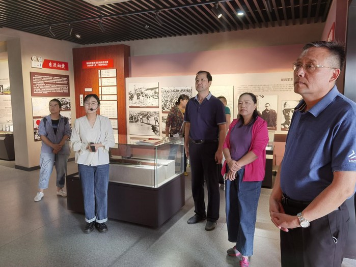在巢湖市银屏镇三胜村,盟员们参观了新四军东进抗日第一枪纪念馆。在纪念馆的序厅,了解了蒋家河口伏击战的历史背景,随后依次参观“日寇侵华”“组建铁军”“东进初捷”“红色银屏”“战后纪念”等板块。盟员们追忆革命历史,详细地了解了新四军东进第一枪的战斗经过,以及这场战斗取得的胜利所带来的重要意义。
