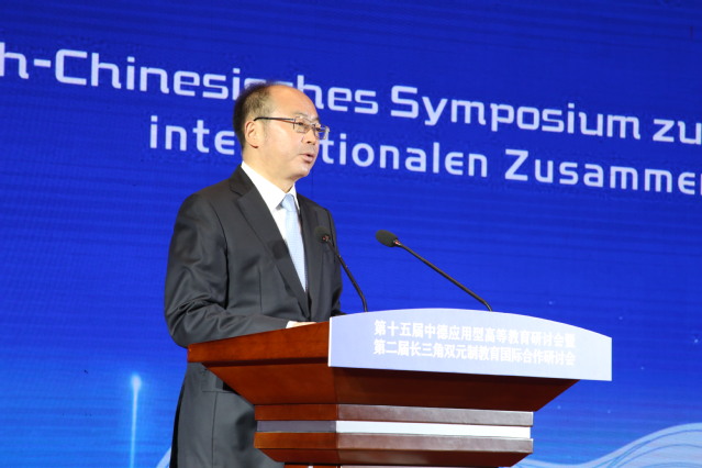 Eröffnung des 15. chinesisch-deutschen Symposiums über anwendungsorientierte Hochschulbildung und des zweiten Symposiums über internationale Zusammenarbeit im dualen Bildungssystem im Yangtze-Delta