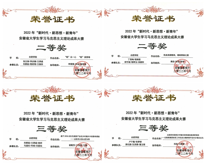 日前,2022年“新时代•新思想•新青年”安徽省大学生学习马克思主义理论成果大赛结果公布,我校共有4项作品荣获奖项,在该项赛事上实现了新的突破。