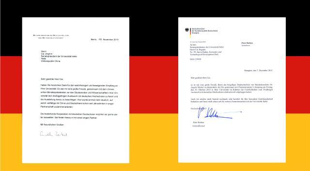 127,德意志联邦共和国驻上海总领事馆总事罗腾先生向我校蔡敬民书记转呈了德国总理安格拉·默克尔的感谢信,并表示“期待能与合肥学院再次合作”。默克尔总理在感谢信中对我校在她访问期间所作的精心安排和温馨感人的接待表示衷心感谢,并表示:合肥学院与德国高校三十年的合作交流“又一次有力地表明了,几十年来中国和德国以多姿多彩的方式进行了密切的伙伴合作”。“我们很愿意进一步扩大贵校与德国高校间现有的合作,在此方面,我乐意成为你们的密切合作伙伴”。