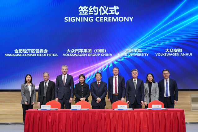 Um die tiefe Integration von Industrie und Bildung, die Zusammenarbeit zwischen den Universitäten und den Unternehmen sowie ein Vorbild für eine Hochschulkooperation im dualen System zu schaffen, fand am 20. Februar im Innovationspark für chinesisch-deutsche Zusammenarbeit in Hefei die feierliche Unterzeichnungs- und Einweihungszeremonie des Volkswagen-Instituts statt. Jens Pfitzinger, exekutiver Vizepräsident der Volkswagen Group (China), Erwin Gabardi, CEO von Volkswagen (Anhui) Co., Ltd, Wang Qidong, Sekretär des Parteikomitees der Universität Hefei, Lu Jun, Mitglied des Ständigen Ausschusses des Parteikomitees der Stadt Hefei, und Chu Changlian, Mitglied des Arbeitsausschusses für Bildung des Parteikomitees der Provinz und stellvertretender Direktor der Bildungsabteilung der Provinz Anhui, nahmen daran teil und hielten Reden. Die Einweihung wurde von Wu Chunmei, Präsidentin der Universität Hefei, moderiert.