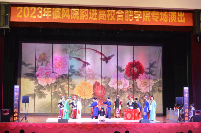 4月27日,2023年“徽风皖韵进高校”合肥学院第二场专场演出——京剧《诓妻嫁妹》在一期致用礼堂举行,来自安徽省徽京剧院的艺术家们用惟妙惟肖的表演、字正腔圆的唱腔让900余名师生观众沉浸式感受到了国粹的魅力。
