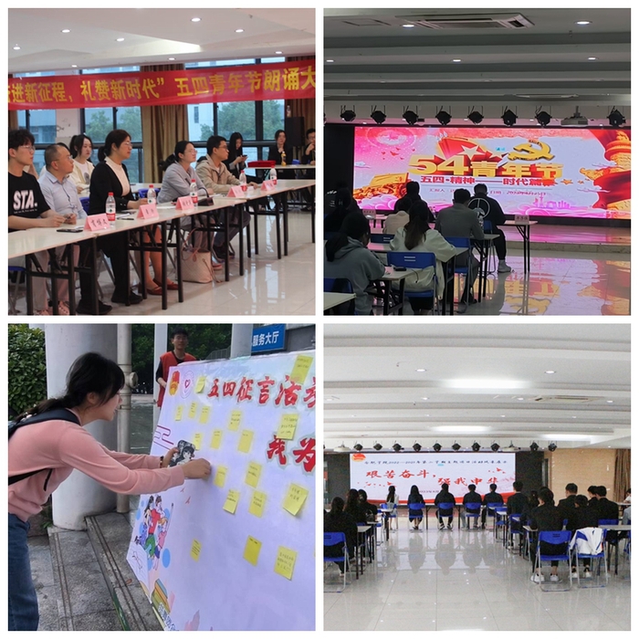 在“奋进新征程,礼赞新时代”五四青年节朗诵大赛中,青年学子同步学习五四精神与党的二十大精神,夯实政治理论基础,唤醒时代担当;在“艰苦奋斗强我中华”主题团日活动,300多个基层班级团支部和34个社团团支部精心策划,结合专业特点和社团特色,校园内营造了浓厚的活动氛围。