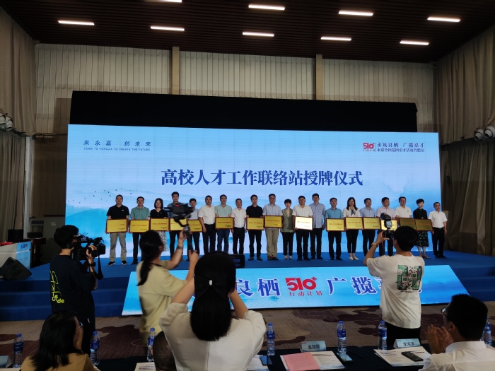 现场举行了高校人才工作联络站授牌仪式,永嘉县向中国科学技术大学、合肥工业大学、合肥学院等15所高校授牌,推动两地建立友好合作关系,促进人才资源、科技与制造等方面的深度融合。