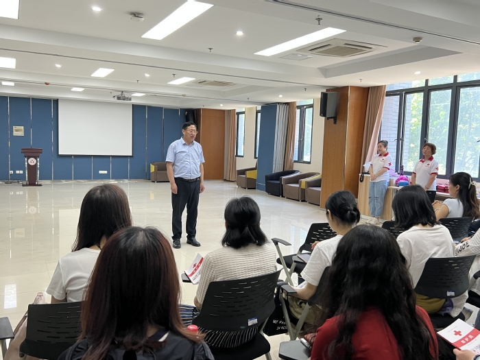 培训伊始,基金会秘书长何世昆致辞。他感谢合肥市红十字会对此次培训的支持,他表示,开展应急救护员培训有助于培养我校教职工应急避险意识与救护实践能力,对提高我校师生自救互救、防灾减灾知识和技能具有重要意义。