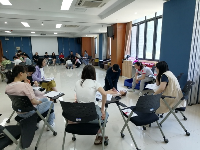 此次培训采取“线上理论学习+线下实操训练”的模式进行。现场培训期间,合肥市红十字会授课老师围绕心肺复苏(CPR)、自动体外除颤仪(AED)使用及创伤包扎等方面,为参训人员进行专业讲解和手把手教学。大家认真观摩聆听,积极主动参与现场演练。