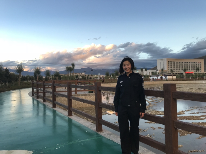 李庆云,设计学院2017届环境设计专业毕业生,现任西藏日喀则市桑珠孜区公安局新开发区派出所四级警长。大学毕业后的李庆云怀揣着对祖国边疆的热爱与向往,报名参加西藏自治区公安机关选拔考试,最终被录取到日喀则市基层派出所工作。寒冬腊月里,李庆云背起行囊踏上雪域高原,没曾想进藏后,由于高寒缺氧,她持续头疼、呕吐一个星期,这让本就瘦弱的她暴瘦10斤。但李庆云没有退缩,她很珍惜这份为国戍边、为民服务的职业,几年来,她克服重重困难,每逢佳节,她都选择坚守岗位,守护万家灯火、做好后勤保障,她总说:“我还年轻,你们先回”。六年里,李庆云在基层工作中发挥自己的光和热,完成了从“艺术生”到“人民警察”的蜕变,让青春在党和人民最需要的地方绽放绚丽之花。