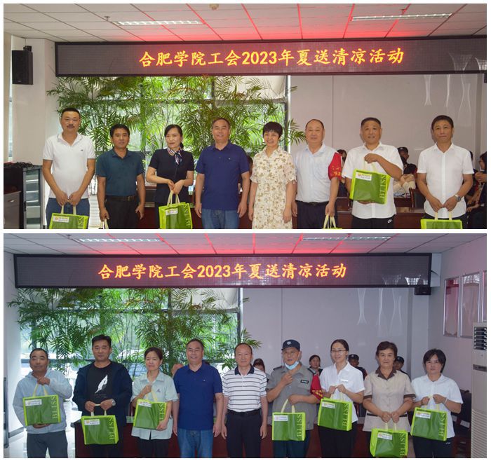 7月18日上午,我校于行政楼一楼会议室举办了主题为“清凉度盛夏,安康伴我行”的2023年夏季“送清凉”活动。校工会主席宣文、副主席邵宏到场慰问后勤集团的职工代表。