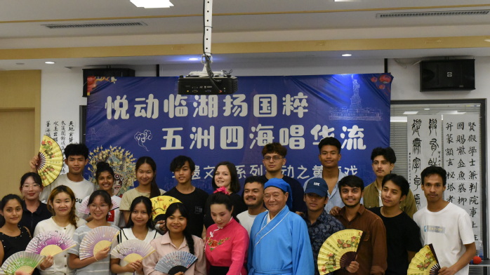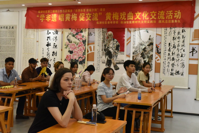 明月照山河,黄梅戏声起。8月3日下午,我校18名留学生代表应邀参加了“悦动临湖扬国粹,五洲四海唱华流”非遗文化系列活动之黄梅戏文化交流活动。此次活动由临湖社区新时代文明实践所临湖社区海外人员服务站冠志社会工作服务中心与我校共同举办。