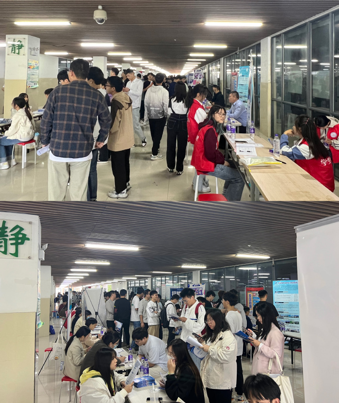 招聘会现场气氛热烈,我校2024届毕业生积极参与求职应聘,深入了解校友企业的招聘要求、职业发展和薪资水平等情况。各校友企业代表在招聘会现场开设求职登记、简历填写、就业指导等服务窗口,与学生深入开展互动交流。