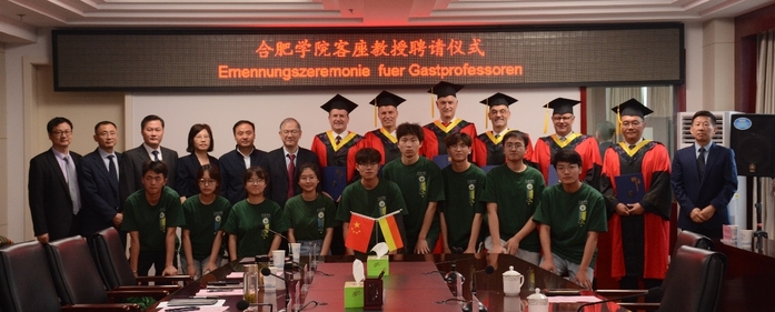 Wu Chunmei betonte, dass die Universität Hefei ihre Bildungsideen im Einklang mit der „Dreifach-Integration von Fachwissen, Beschäftigung und Industrie“ ausrichtet und dabei ihre Erfahrungen in der Ausbildung hochqualifizierter anwendungsorientierter Talente für die Entwicklung der regionalen Wirtschaft und Gesellschaft einsetzt. Um die Strategie der Stärkung der Talente an der Hochschule umzusetzen, die Entwicklung der neuen Energieautomobilindustrie gemäß den Entwicklungsplänen des Parteikomitees und der Stadtregierung Hefeis zu fördern, die Zusammenarbeit zwischen Hochschulen und Unternehmen zu vertiefen sowie die gemeinsame Erziehung voranzutreiben, wurden sechs Vorstandsmitglieder von Volkswagen Anhui zu Gastprofessoren berufen.