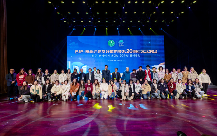 当晚,为庆祝合肥市与韩国原州市缔结友好城市20周年,一场精彩的文艺演出在合肥工人文化宫职工剧院举行。我校朝鲜语专业的学生们受邀前往观看,感受中韩两国文化的交融与碰撞。韩国原州市市长元康修与朝鲜语专业学生代表石珊珊亲切交流,合肥市委副书记、市长罗云峰和原州市长元康修与学生们合影留念。学生们纷纷表示,这次活动让他们拓宽了国际视野,他们将把学到的知识带回校园,为中韩文化交流贡献力量。