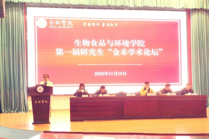 为提升研究生培养质量,激发学生科研兴趣,11月18日,生物食品与环境学院、研究生处和科研处共同举办首届研究生论坛。安徽金禾实业股份有限公司人事经理张嘉声、安徽金禾化学材料研究所所长杨洋,研究生处处长葛春梅、服务地方办公室副主任肖新国、生物食品与环境学院副院长(主持工作)阮班锋,生物食品与环境学院全体研究生及部分本科生参加开幕式。开幕式由生物食品与环境学院副院长笪春年主持。