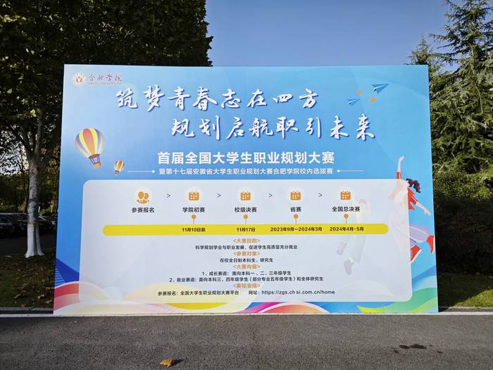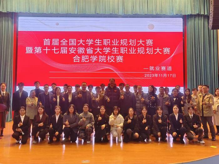 11月17日下午,首届全国大学生职业规划大赛暨第十七届安徽省大学生职业规划大赛合肥学院校赛在图书馆报告厅举办。中国科学技术大学就业指导中心主任郝心远、安徽中医药大学学生处副处长詹钟华以及皖信人力集团区域政府事业部总经理柳超霞、新安人才网党总支副书记朱文颖、联宝科技赵翠蕾、长鑫存储李丽丽等担任大赛评委。各学院指导老师及学生代表观看了比赛。