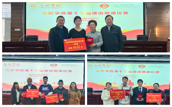 11月24日下午,合肥学院第十三届德语朗诵比赛在学校一期六栋报告厅举行。外国语学院党委书记吴孔宝、院长叶旭萍、安徽中德教育合作基金会秘书长何世昆、德语系主任张炜等参加。本次比赛由安徽中德教育合作基金会赞助,12名来自德语系、物流班、大陆班和信息与计算机科学班的学生同台竞技。外国语学院朱越、李菲菲、赵赫男、刘倩男四位老师担任评委。